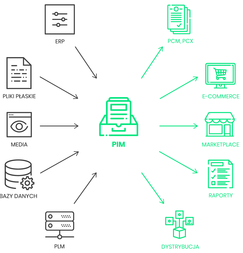System PIM zbiera w jednym miejscu i konsoliduje informacje o produkcie z różnych źródeł oraz umożliwia ich publikację w różnych kanałach. Wówczas potrzebne dane można łatwo wyszukiwać, weryfikować i wzbogacać, a aktualizacja informacji o produkcie we wszystkich kanałach czy dodanie nowego produktu do oferty zajmuje dużo mniej czasu.