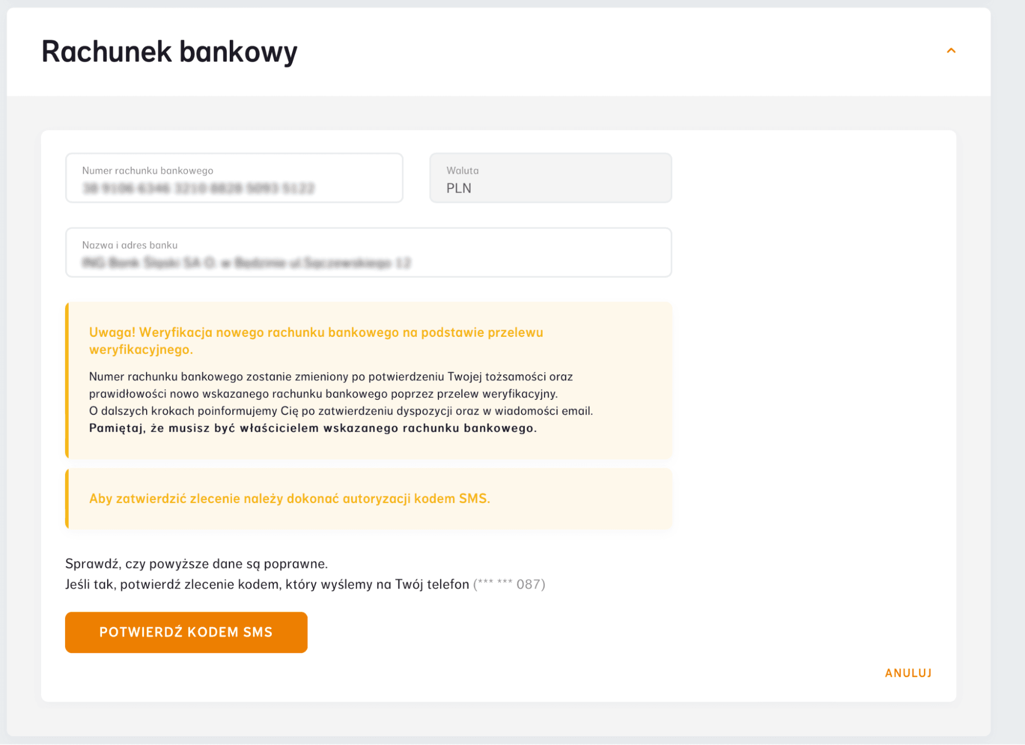Dodatkowe procesy zabezpieczające, np. zmianę rachunku bankowego.