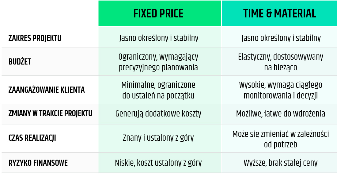 Kluczowe jest, aby zrozumieć, jak różne modele wpływają na zarządzanie projektem i jakie korzyści oraz ryzyka się z nimi wiążą. Jeśli projekt wymaga dużej elastyczności i bieżącego dostosowywania się do zmieniających się warunków, bardziej odpowiedni będzie model Time & Material. Natomiast dla projektów o stabilnych i dobrze zdefiniowanych wymaganiach, Fixed Price może zapewnić większe bezpieczeństwo budżetowe.