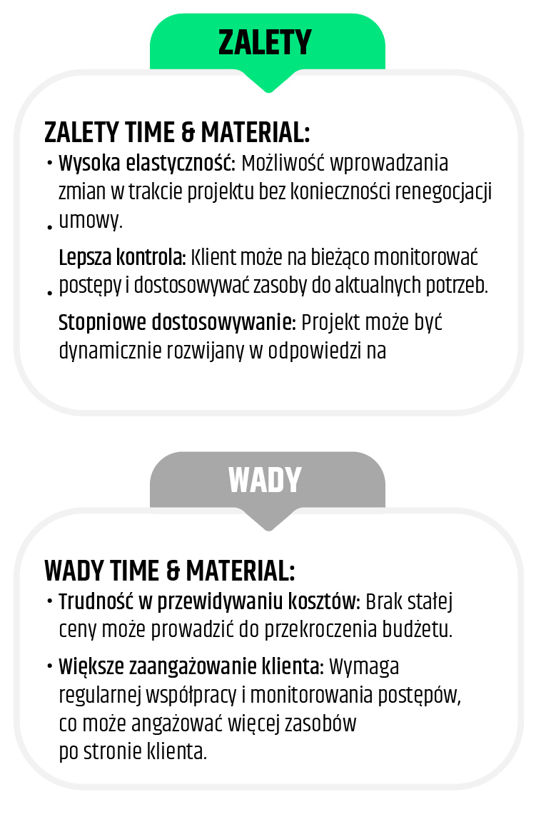 Przy wyborze modelu warto również rozważyć, jak istotna jest dla klienta kontrola nad projektem oraz możliwość wprowadzania zmian w trakcie jego realizacji. Time & Material daje większą swobodę w tym zakresie, ale wymaga również większego zaangażowania i gotowości do zarządzania zmieniającymi się kosztami. Z kolei Fixed Price oferuje prostsze zarządzanie finansami, ale kosztem mniejszej elastyczności.