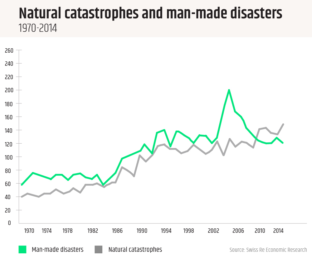 Swiss Re prognozuje, że rok 2018, kiedy wydarzyło się wiele mniejszych rozmiarowo katastrof naturalnych, bardzo często powiązanych ze zjawiskami pogodowymi, należy być może uznać jako “nową normalność”. Katastrof będzie coraz więcej i będą powodowały coraz większe szkody.