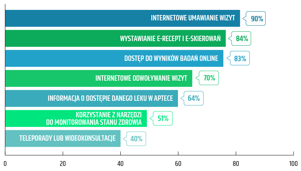Wszystkie opisane wyżej persony łączy rosnąca świadomość wygody i efektywności usług cyfrowych. Poza rozwiązaniami digitalowymi pacjenci zwracają także uwagę na czynniki takie jak: