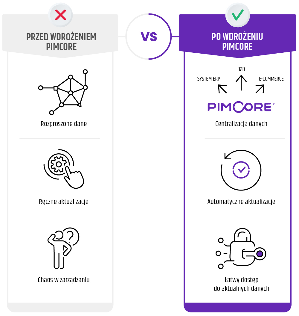 Centralizacja danych umożliwiła także automatyczne aktualizacje, co ma kluczowe znaczenie dla organizacji i spójności informacji. Teraz klienci, niezależnie od kanału – B2B czy e-commerce – mają dostęp do pełnych, aktualnych informacji produktowych. To uporządkowanie sprawia, że zarządzanie tak bogatą ofertą staje się prostsze, a dane są zawsze zgodne i gotowe do wykorzystania na każdym etapie sprzedaży.