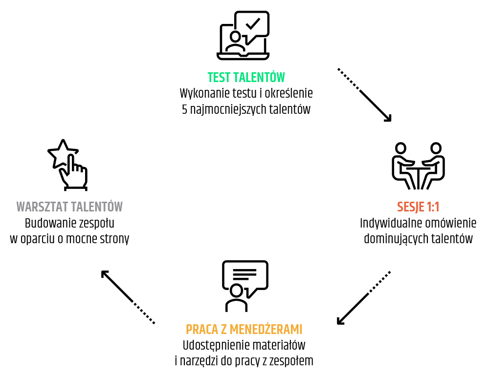 - udostępnienie badania CliftonStrengths wszystkim pracownikom,
