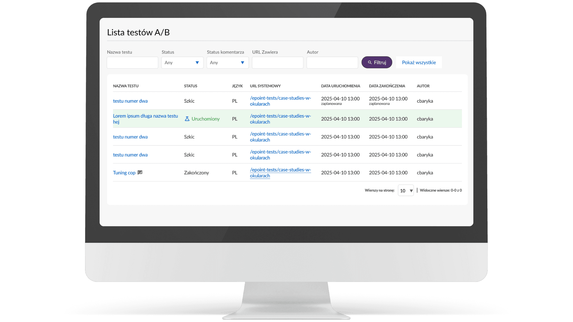 Globalna lista testów: Zarządzaj wszystkimi eksperymentami w jednym miejscu, aby mieć wgląd w to, co jest aktualnie testowane i jakie hipotezy zostały już zweryfikowane.