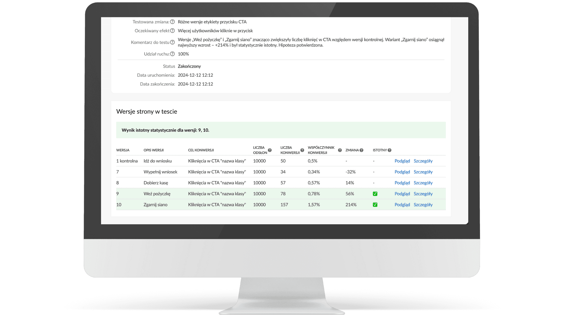 Istotność statystyczna w standardzie: Nie musisz być statystykiem. Panel wprost poinformuje Cię, kiedy wyniki testu są wiarygodne (na poziomie ufności 95%).
